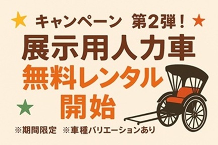 くるま屋はイベント・広告・展示など数々の実績があり、イベント会社様・人力車に看板広告を出される広告主様・店頭ディスプレーなどレンタル展示されるお店舗様などのご相談・ご依頼を歓迎いたします。